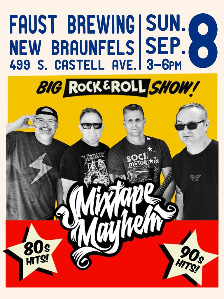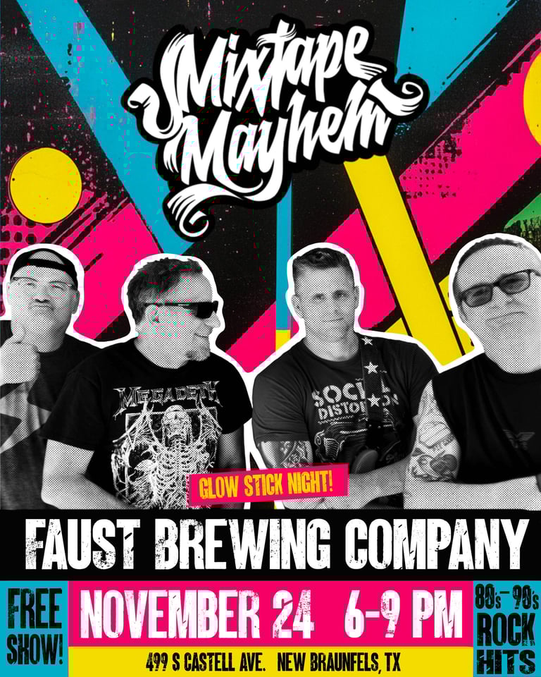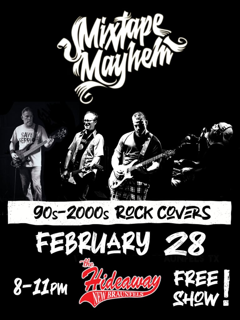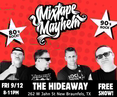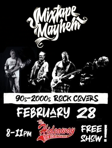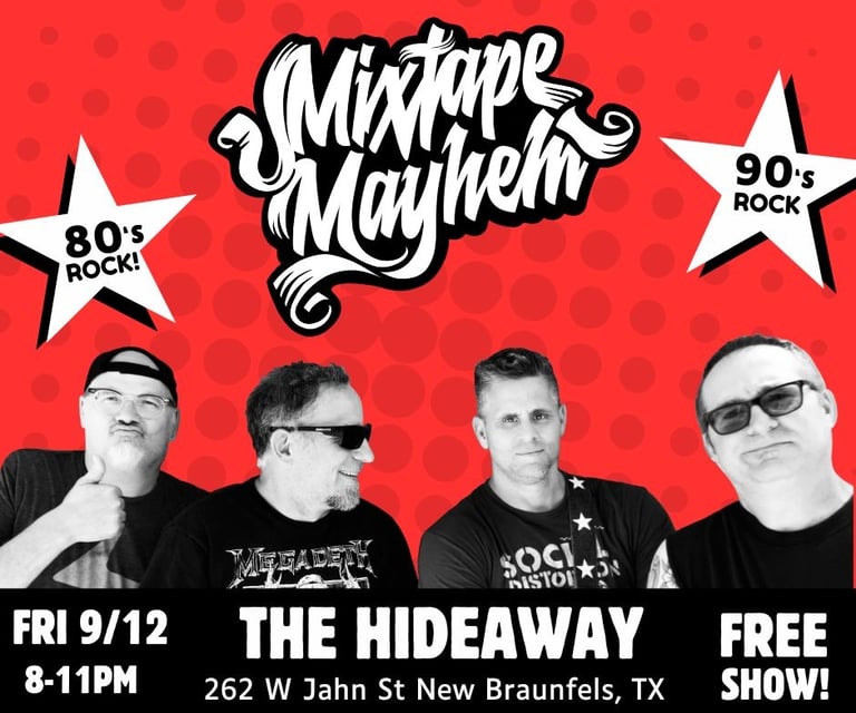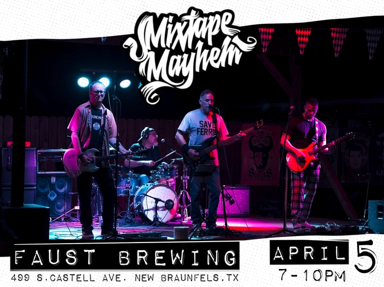 With their authentic sound, electrifying performances, and a playlist that will have you reminiscing about forgotten songs , Mixtape Mayhem are here to prove that rock 'n' roll is alive and well in the heart of Texas!
