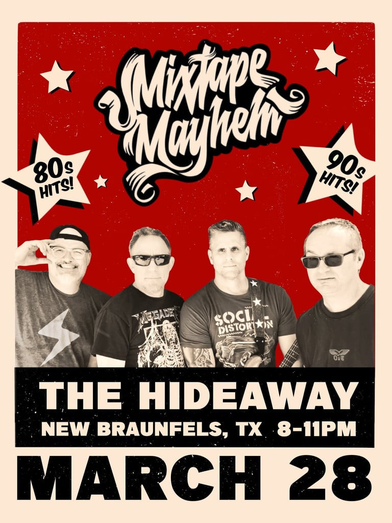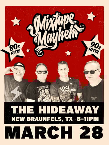 With their authentic sound, electrifying performances, and a playlist that will have you reminiscing about forgotten songs , Mixtape Mayhem are here to prove that rock 'n' roll is alive and well in the heart of Texas!