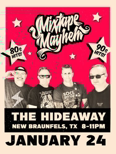 With their authentic sound, electrifying performances, and a playlist that will have you reminiscing about forgotten songs , Mixtape Mayhem are here to prove that rock 'n' roll is alive and well in the heart of Texas!